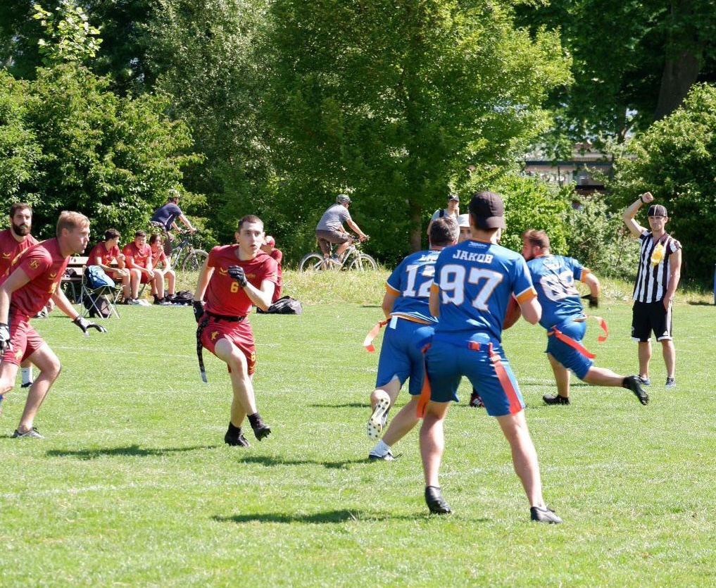 vollständiges Flag Footballspiel dauert 2x 20 Minuten.